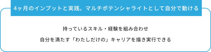 隔週のライブ講義のほか、もくもく会・1on1セッション・ワークに取り組み、自分だけのキャリアを描く3ヶ月間。